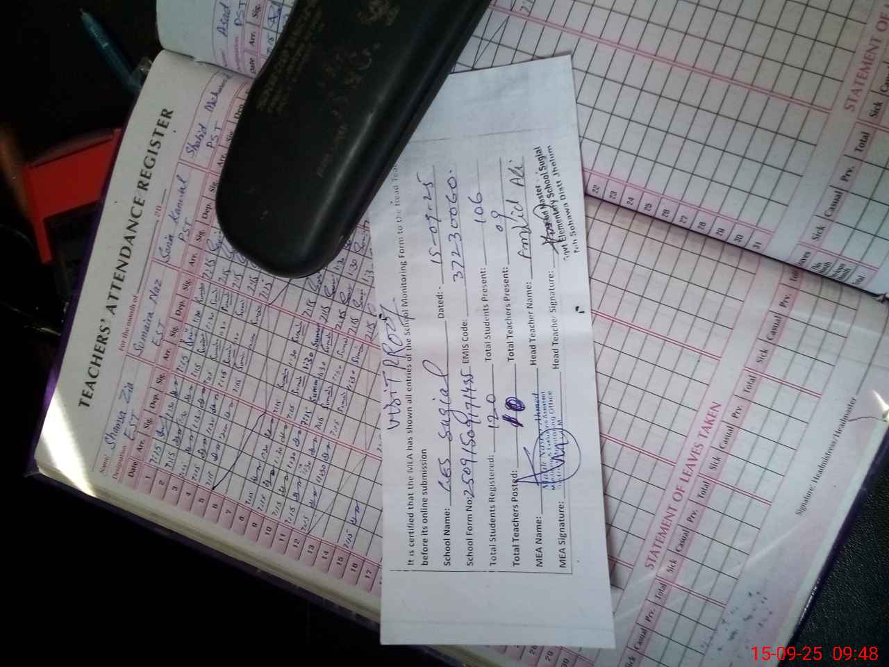 | Attendance Register | Head Teacher | MEA with School | Visit Proof |