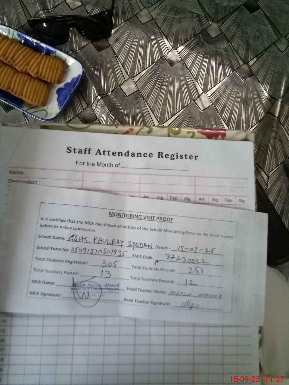 | Attendance Register | Head Teacher | MEA with School | Visit Proof |