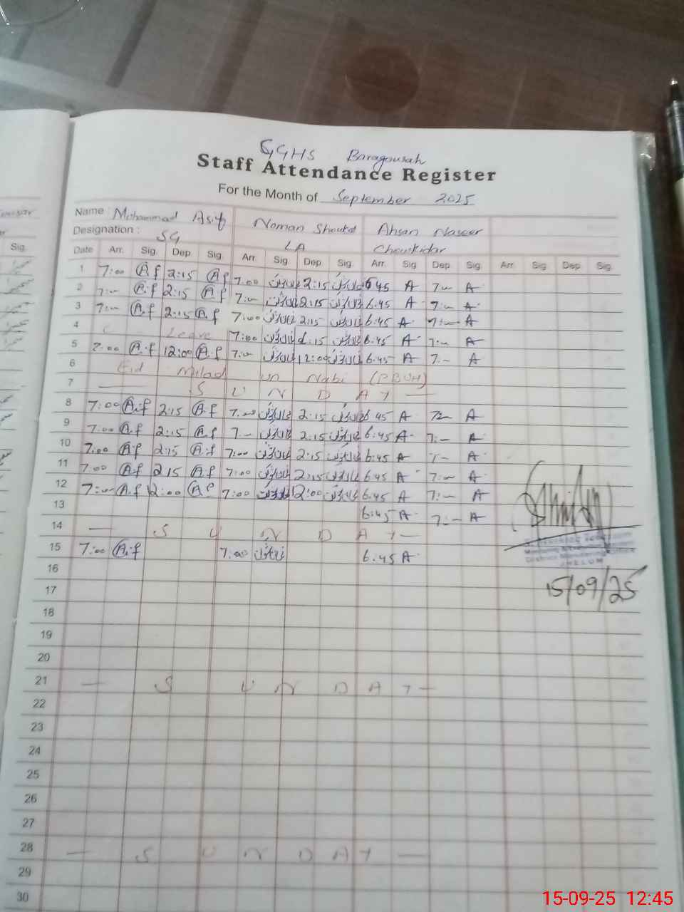 | Name: UZ**** Gu**** Designation: (School Headmaster's/Headmistress's) SST Phone/Cell Number: 03**** |