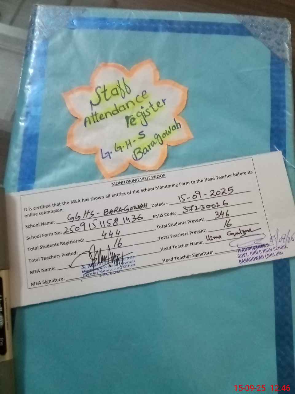 | EMIS Code: 37230026 | Name of School: GGHS BARA GOWAH | |||