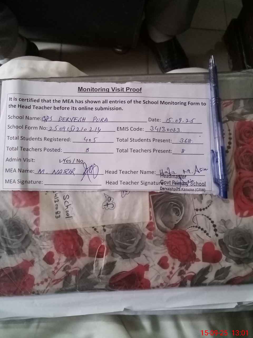 | EMIS Code: 34130083 | Name of School: GPS DERVESH PURA | |||