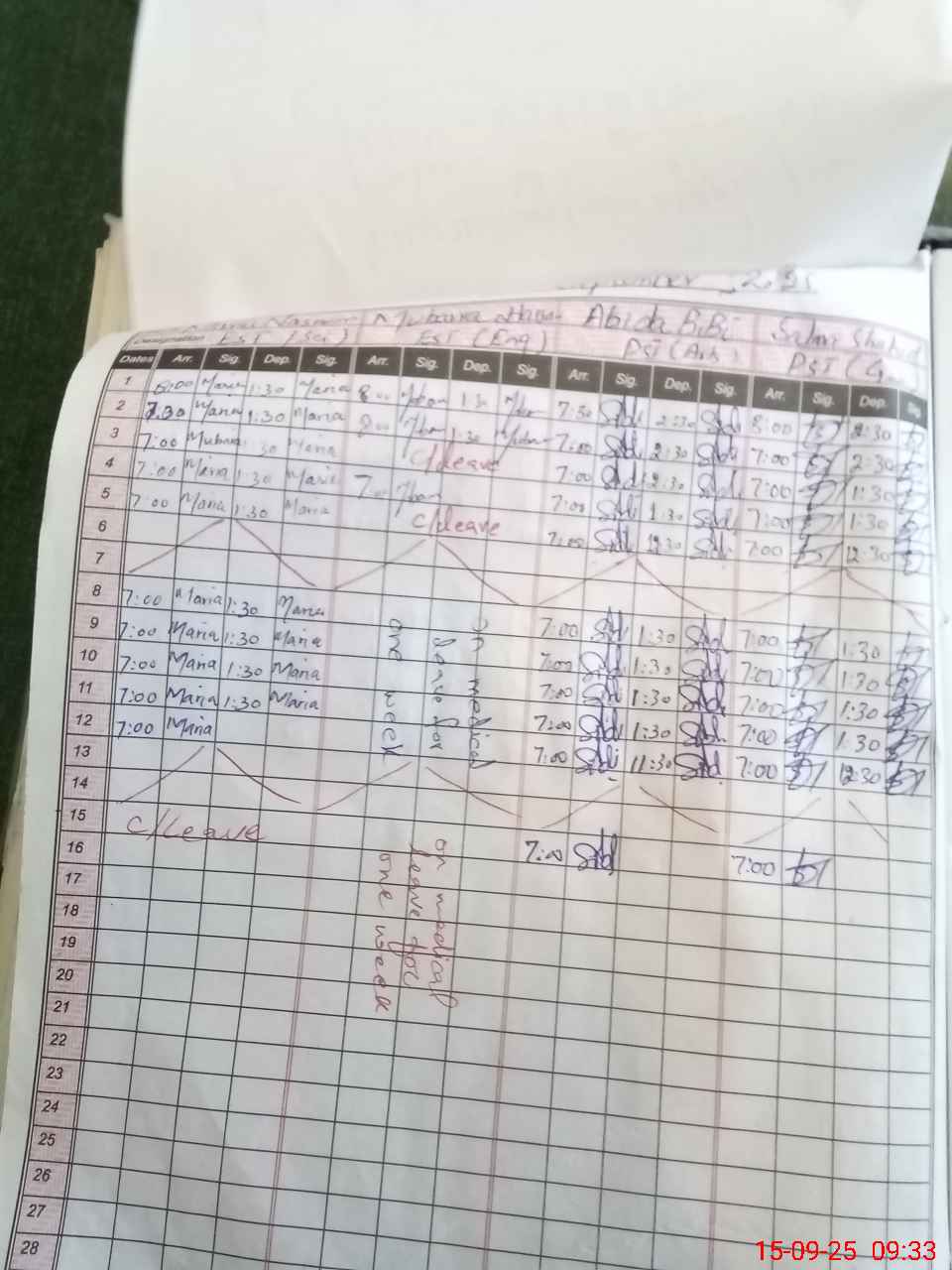 | Leave | Duty | Absent | Maternity | Medical | Ex- Pak |