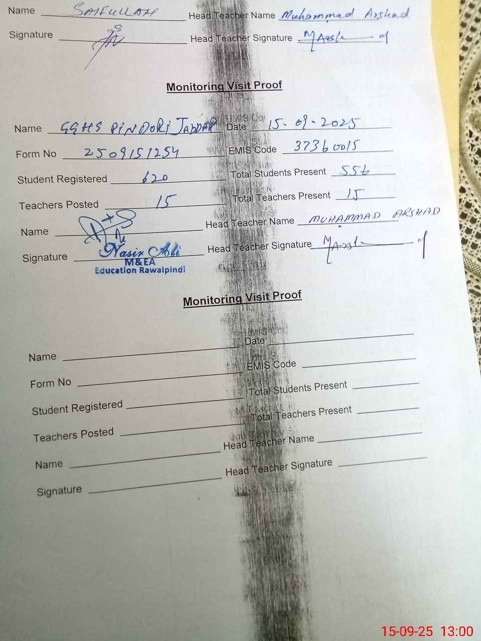| Attendance Register | Head Teacher | MEA with School | Visit Proof |
