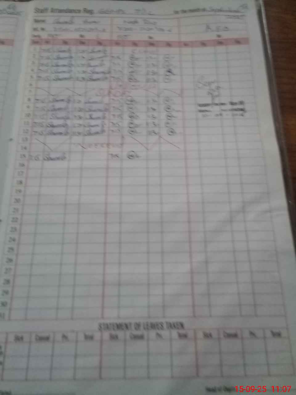 Leave Type | Remarks for today (Leave,Training, Exam,Absent,Late, Other duty) |