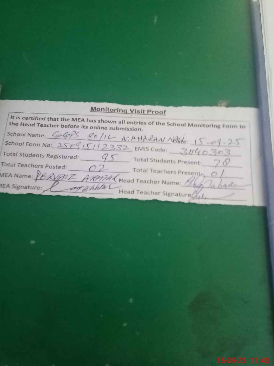 | EMIS Code: 31140303 | Name of School: GGPS 80/1-L MAHARAN WALI | |||