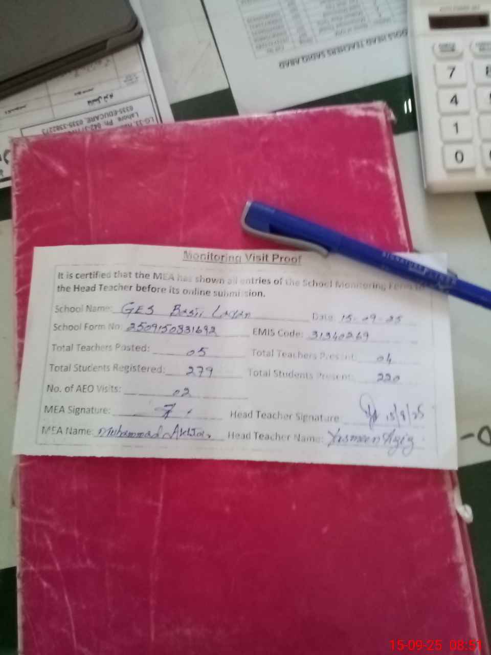 | EMIS Code: 31340269 | Name of School: GES BASTI LARAN | |||