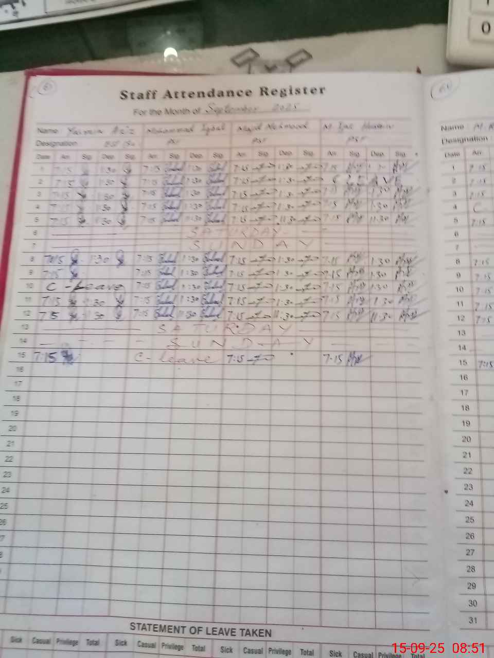 | Monitoring Date: 15-09-2025 | Start Time: 15-09-2025 08:31 AM | End Time: 15-09-2025 08:52 AM | Name of MEA: Mu**** Ak**** | |