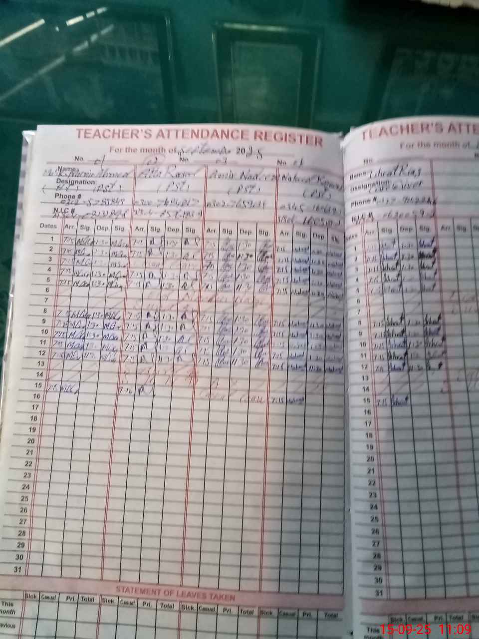 | CNIC | Full Name | Designation | R/C | Absence During Last Calender Month |