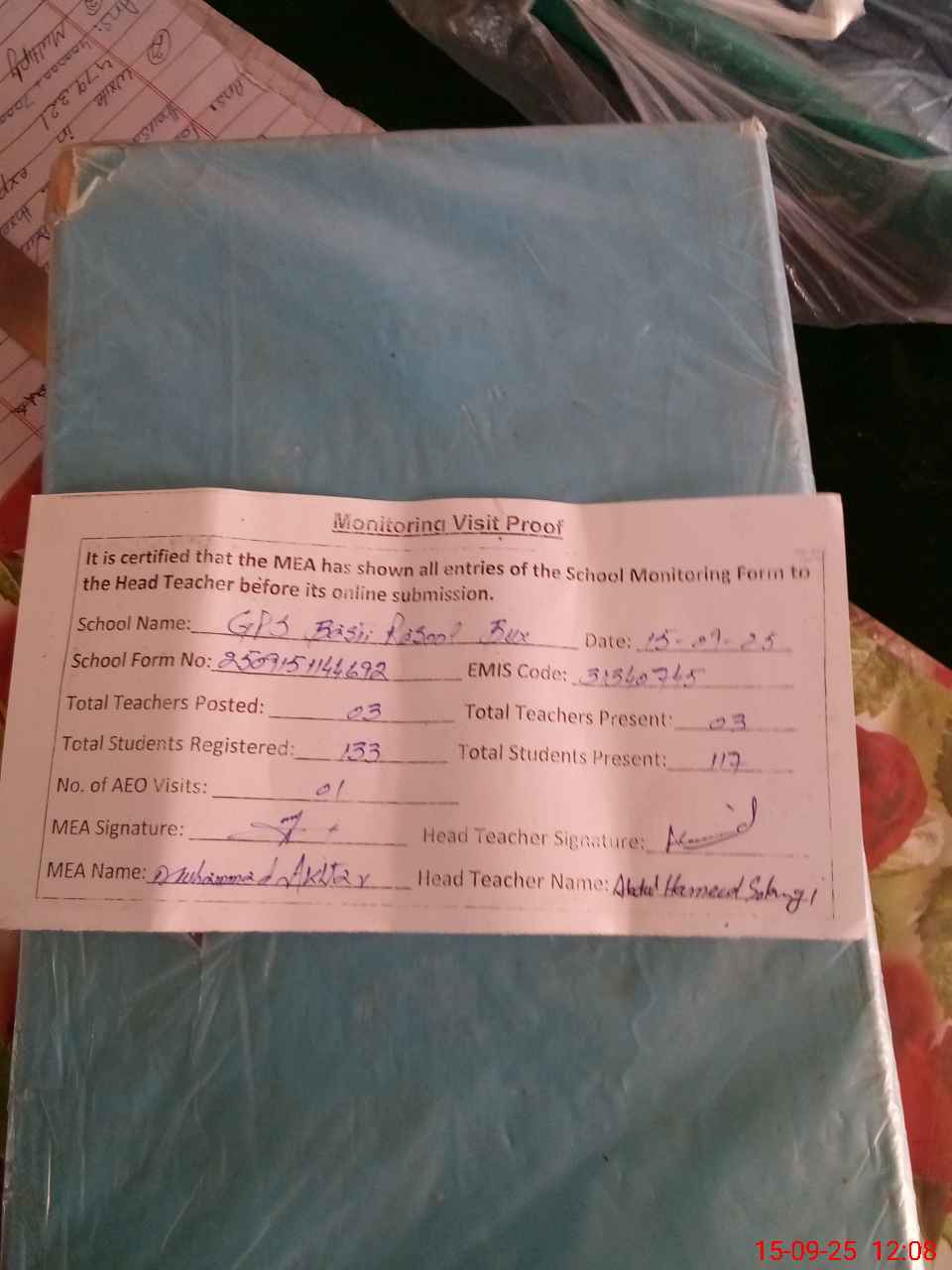 | EMIS Code: 31340745 | Name of School: GPS BASTI RASOOL BUX | |||