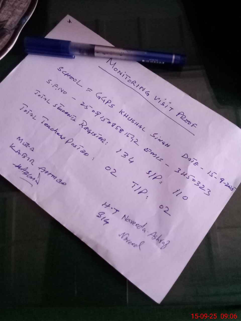 | EMIS Code: 31150323 | Name of School: GGPS KHUSHAL SINGH | |||
