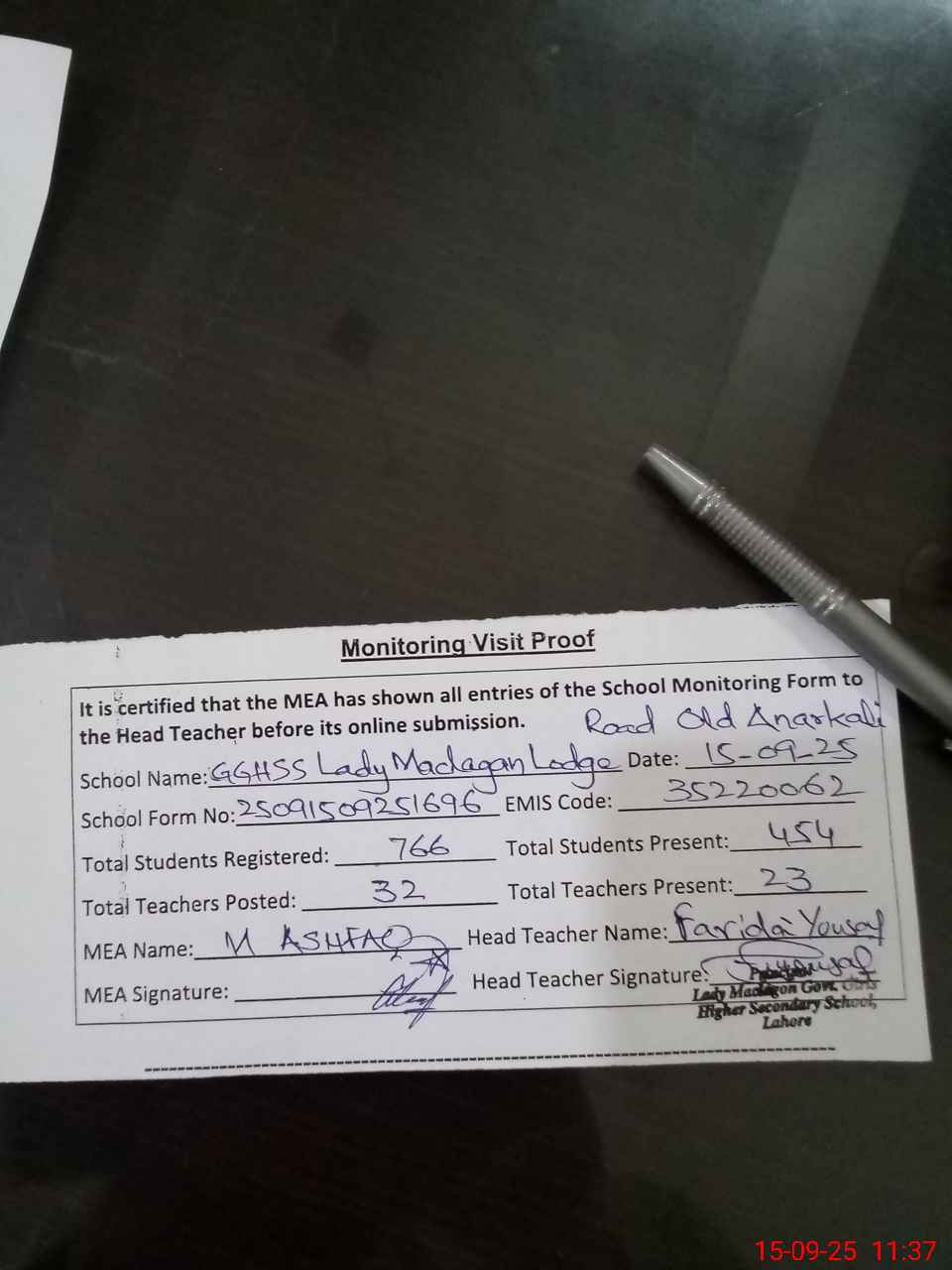 | EMIS Code: 35220062 | Name of School: GGHSS LADY MACLAGAN LODGE ROAD OLD ANARKALI | |||