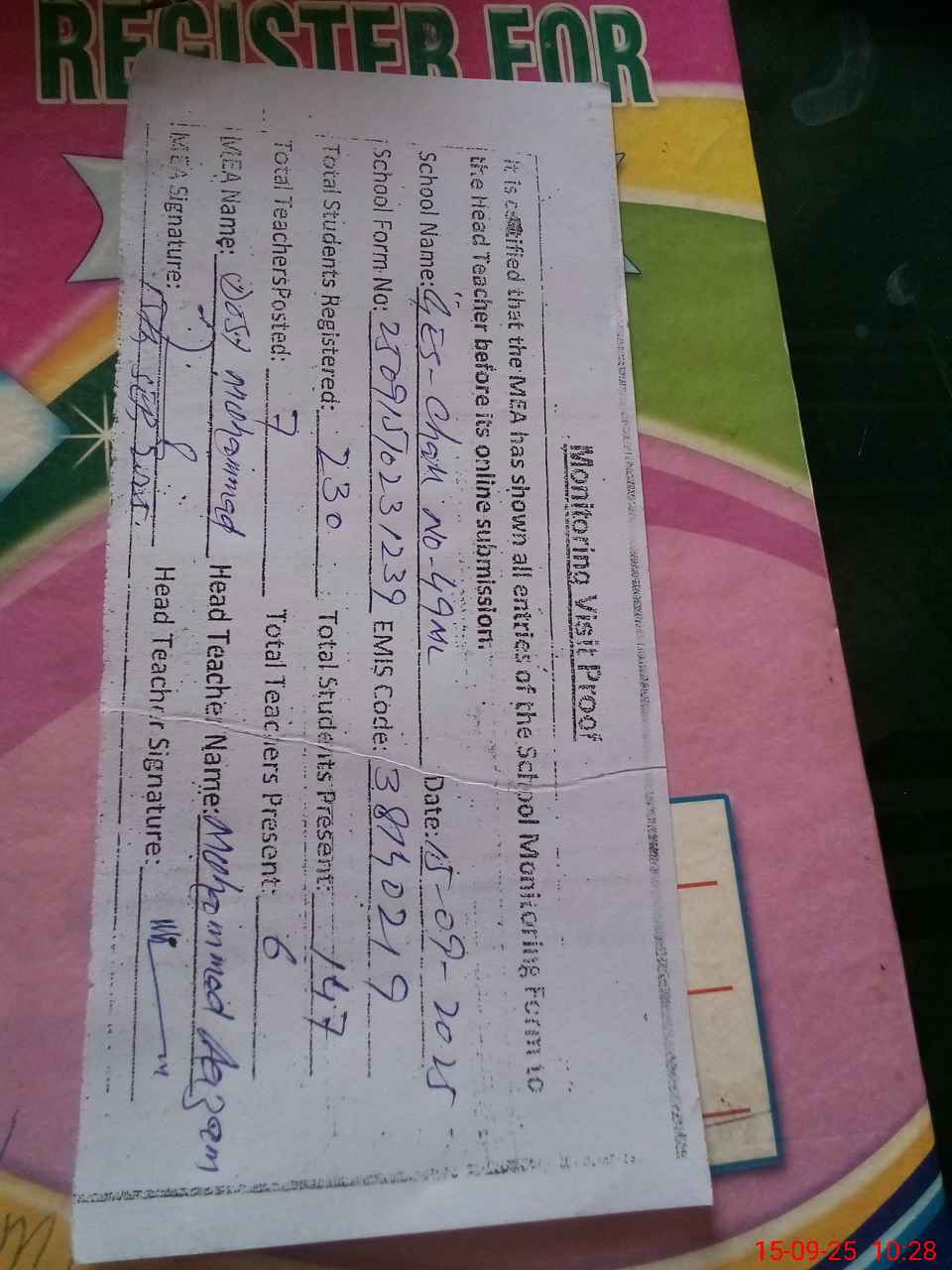 | EMIS Code: 38140219 | Name of School: GES CHAK NO 49 ML PO AMIR ABAD | |||