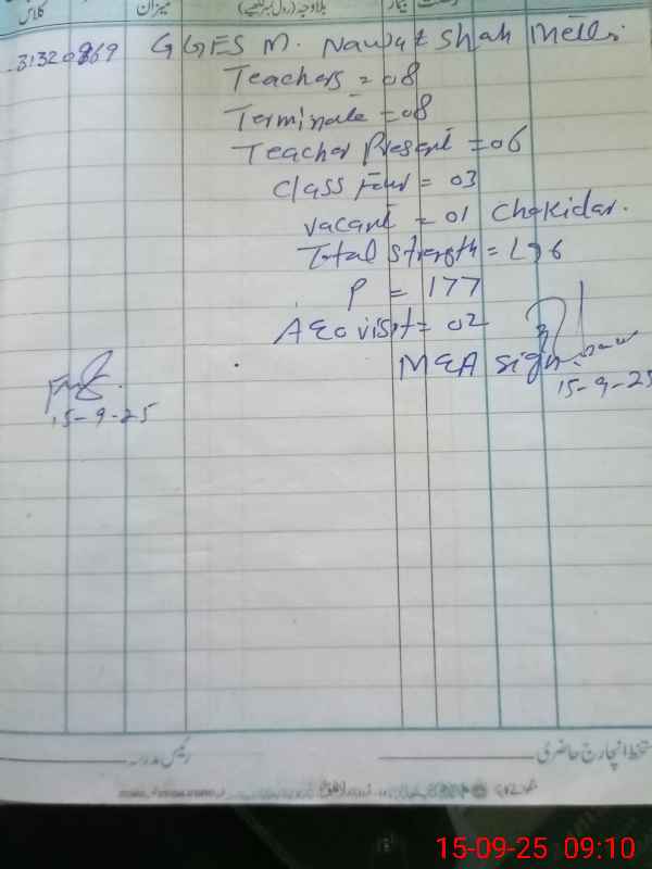 | EMIS Code: 31320969 | Name of School: GGES MUHAMMAD NAWAZ SHAH | |||