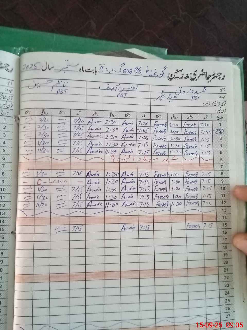 | CNIC | Full Name | Designation | R/C | Absence During Last Calender Month |