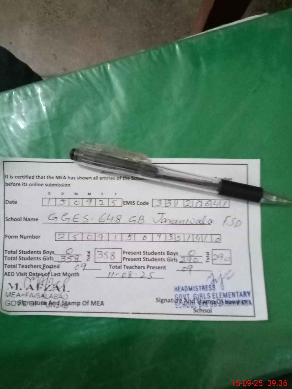 | EMIS Code: 33120641 | Name of School: GGES CHAK NO 648 GB | |||