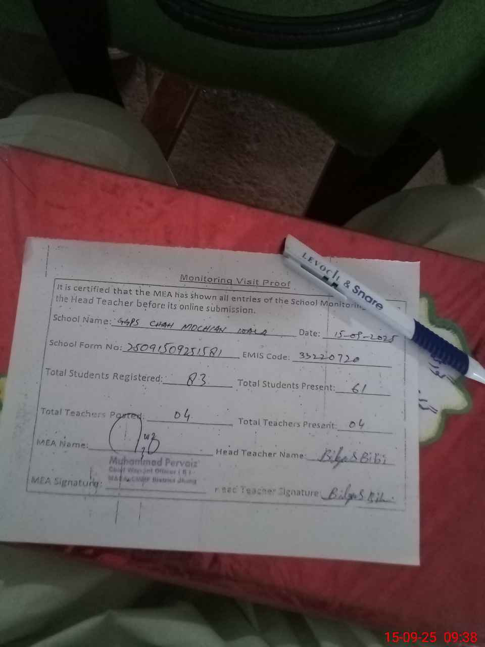| EMIS Code: 33220720 | Name of School: GGPS CHAH MOCHIAN WALA | |||