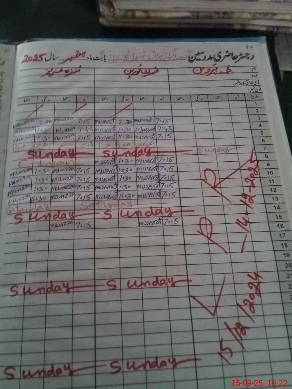 | CNIC | Full Name | Designation | R/C | Absence During Last Calender Month |