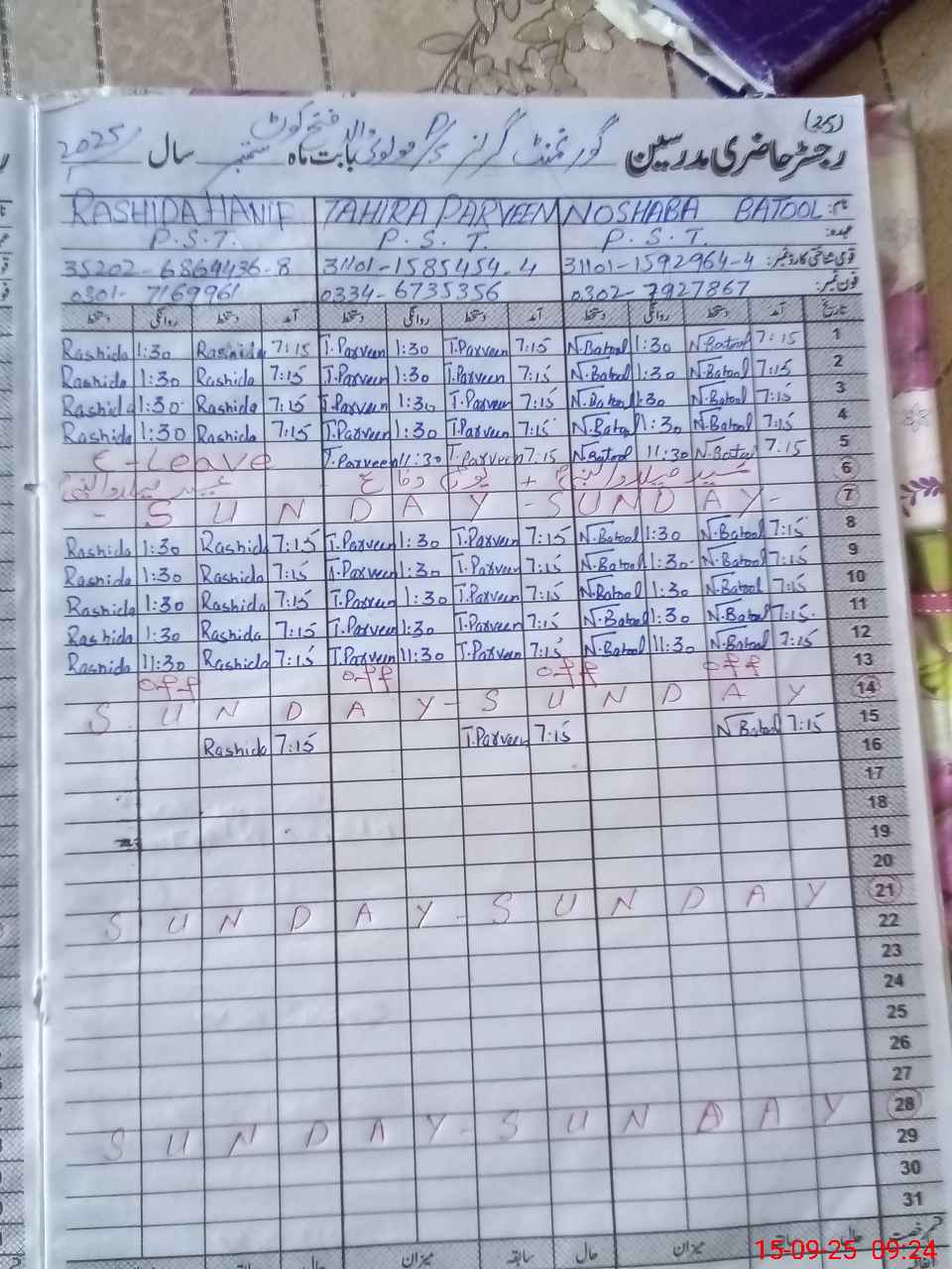 | Name: No**** Ba**** Designation: (School Headmaster's/Headmistress's) PST Phone/Cell Number: 03**** |