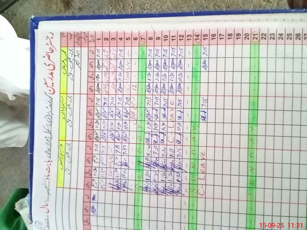 | CNIC | Full Name | Designation | R/C | Absence During Last Calender Month |