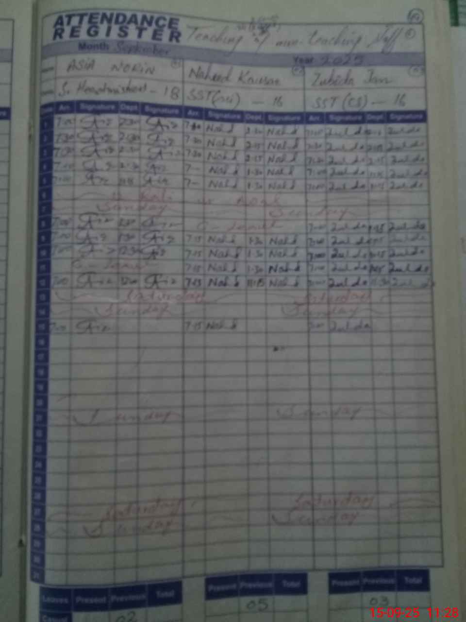 | 33**** | Al**** Ba**** | 1 | 1 | 0 | 0 | 0 | 0 | 0 | 0 | 0 | 0 | 0 | Absent (Un-Authorized) |
