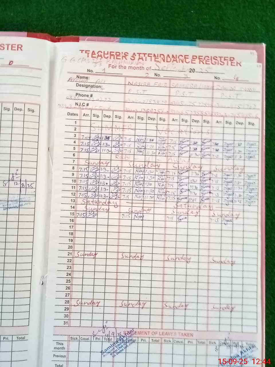 | Name: AY**** AL**** Designation: (School Headmaster's/Headmistress's) PST I/C HEADMASTER Phone/Cell Number: 03**** |