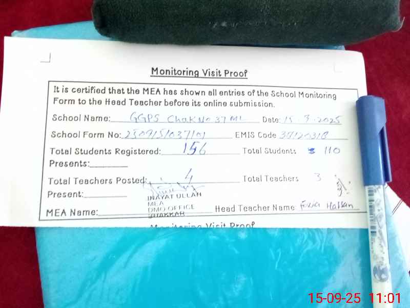| EMIS Code: 38120318 | Name of School: GGPS CHAK NO 37 ML | |||