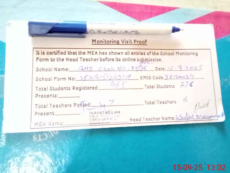 | EMIS Code: 38120034 | Name of School: GHS CHAK NO. 35-36 ML | |||