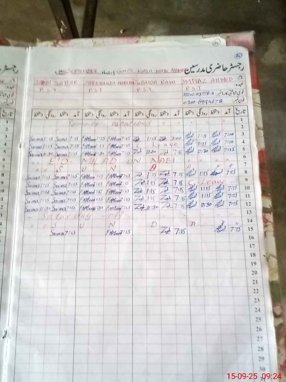 | Name: MU**** MU**** Designation: (School Headmaster's/Headmistress's) PST Phone/Cell Number: 03**** |