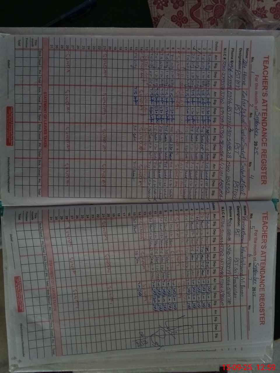 | CNIC | Full Name | Designation | R/C | Absence During Last Calender Month |