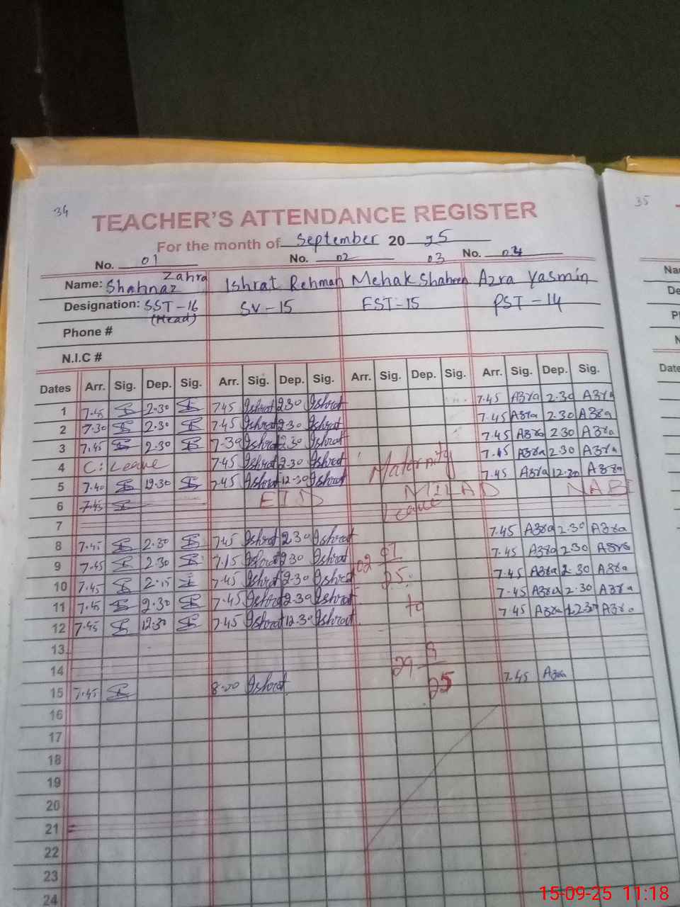 | Name: SH**** ZA**** Designation: (School Headmaster's/Headmistress's) Head Mistress Phone/Cell Number: 03**** |