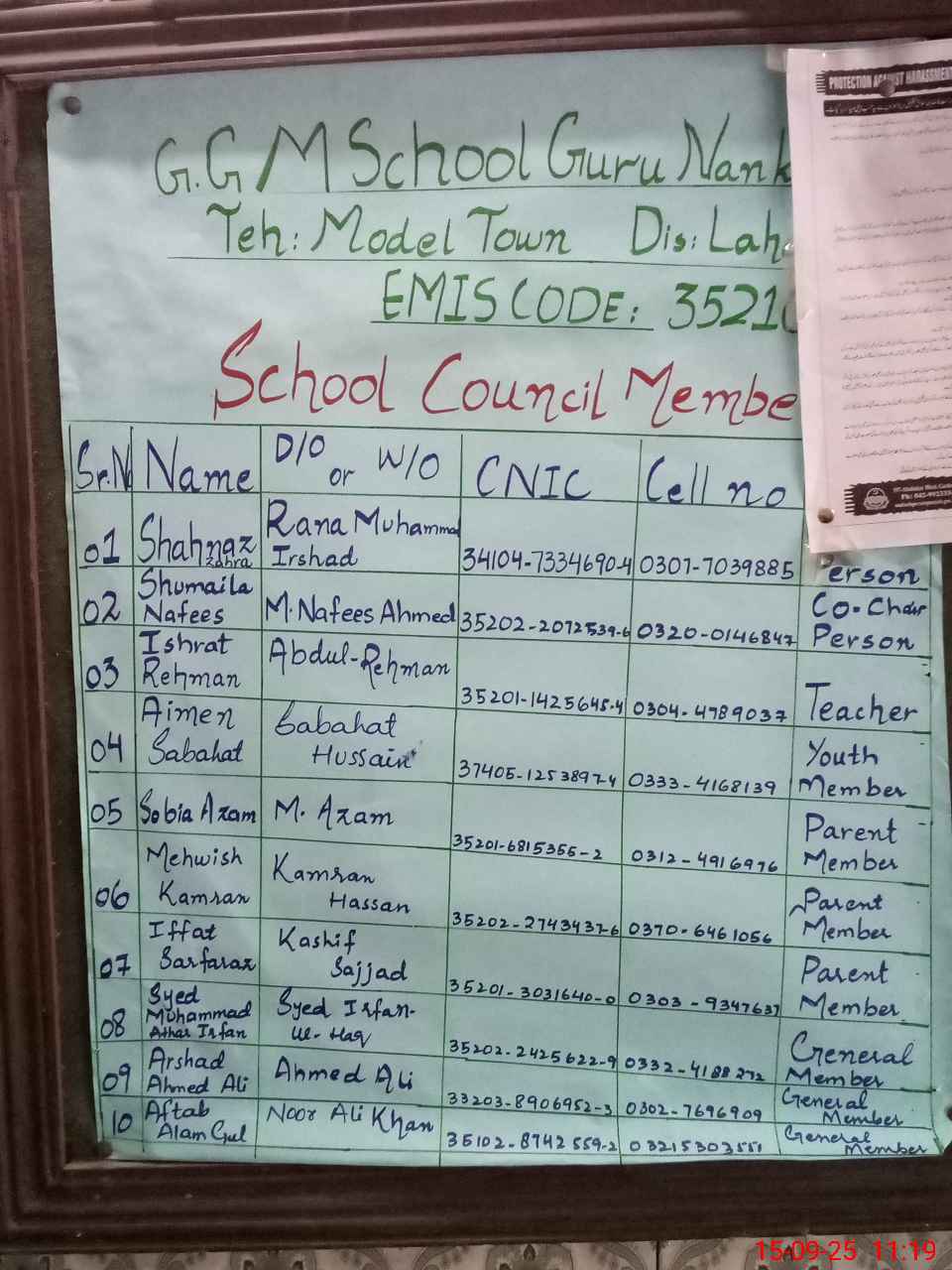 | EMIS Code: 35210158 | Name of School: GGES GURU NANAK ICHHRA LAHORE | |||