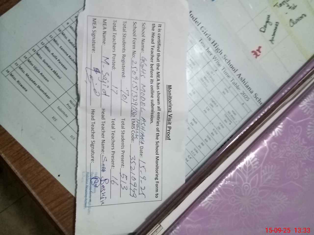 | EMIS Code: 35210949 | Name of School: GGHS MODEL ASHIANA HOUSING SCHEME NO. 1 FEROZPUR ROAD | |||