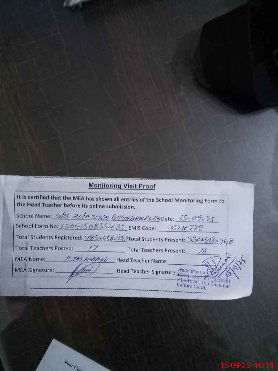 | EMIS Code: 35210778 | Name of School: GPS ALIA TOWN BAGHBANPURA | |||