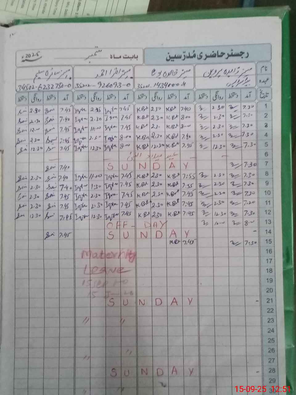 | 35**** | Al**** Hu**** | SG | 0 | 0 | 0 | 0 | 0 | 0 | 0 | 0 | 0 | Absent (Un-Authorized) | |