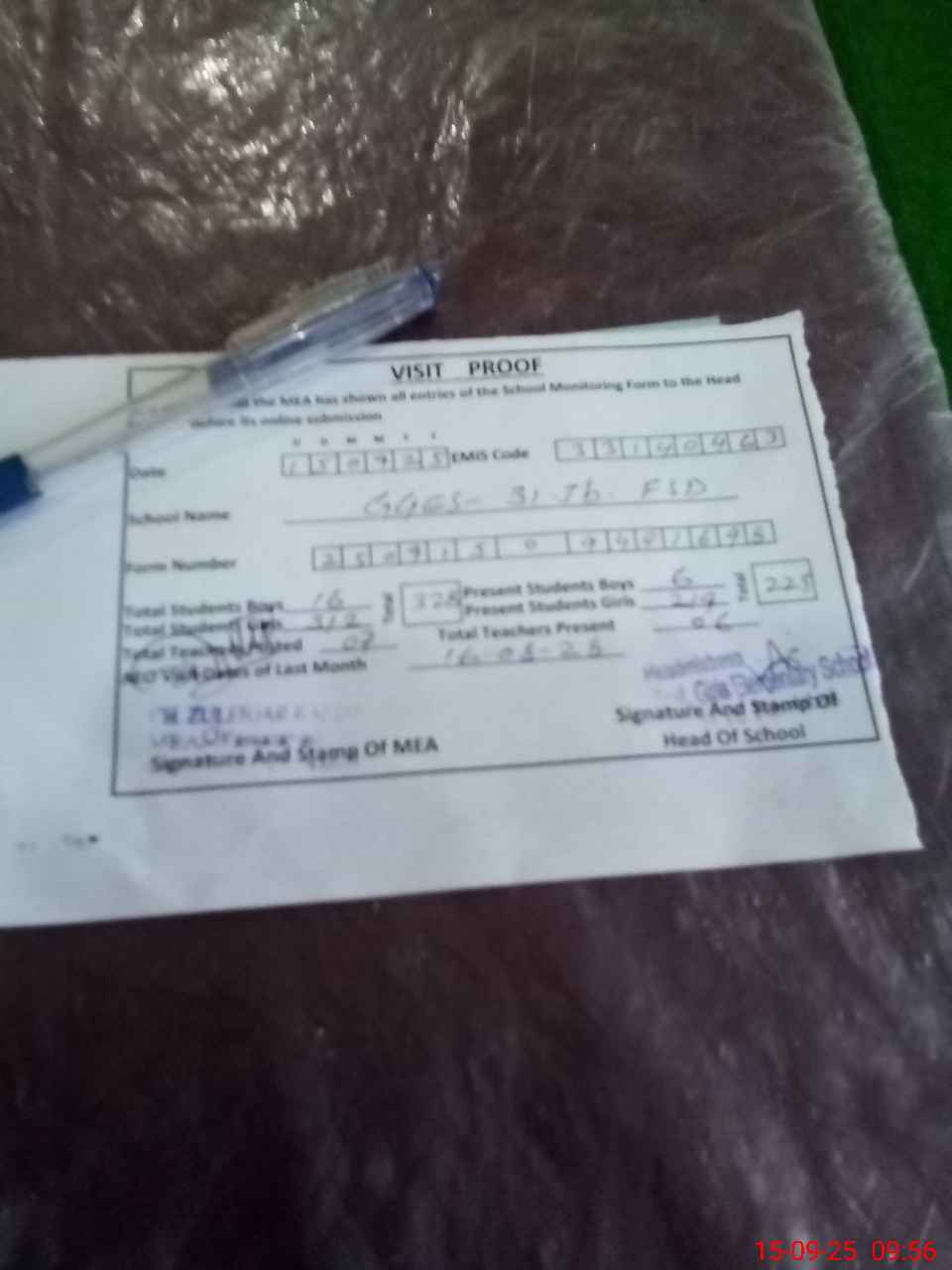 | EMIS Code: 33140463 | Name of School: GGES CHAK NO 31 JB | |||