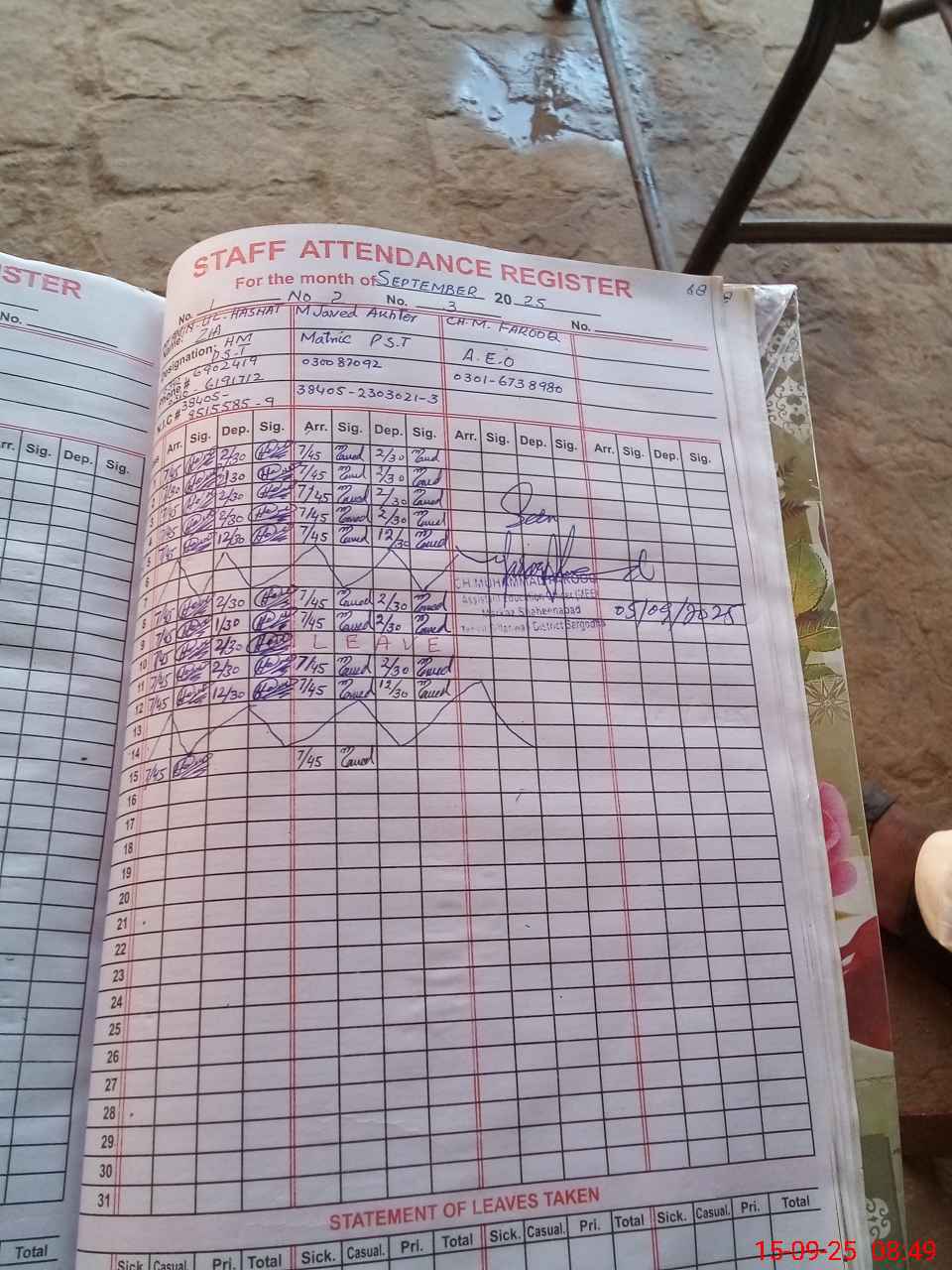 | Name: MAm**** UlHa**** Zi**** Designation: (School Headmaster's/Headmistress's) PTC/JV Phone/Cell Number: 03**** |