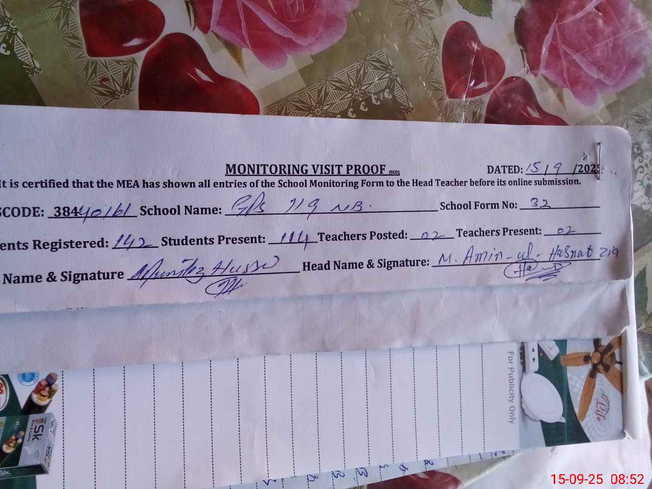 | EMIS Code: 38440161 | Name of School: GPS CHAK NO.119 NB | |||