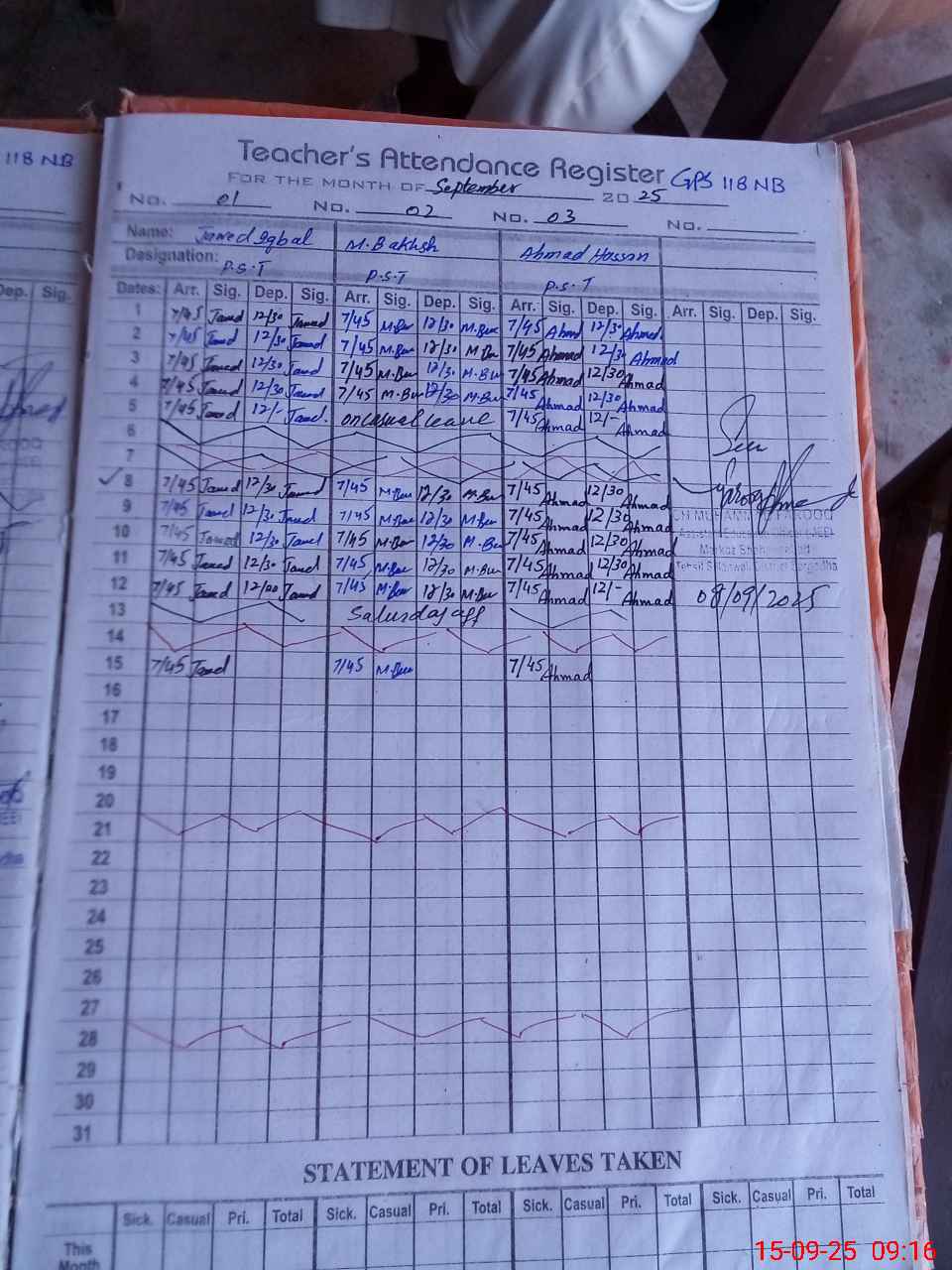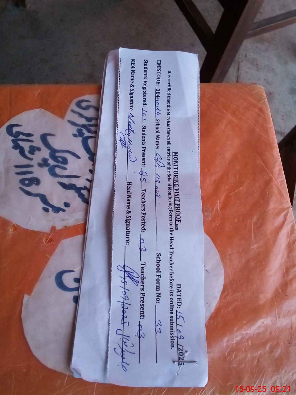 | Attendance Register | Head Teacher | MEA with School | Visit Proof |
