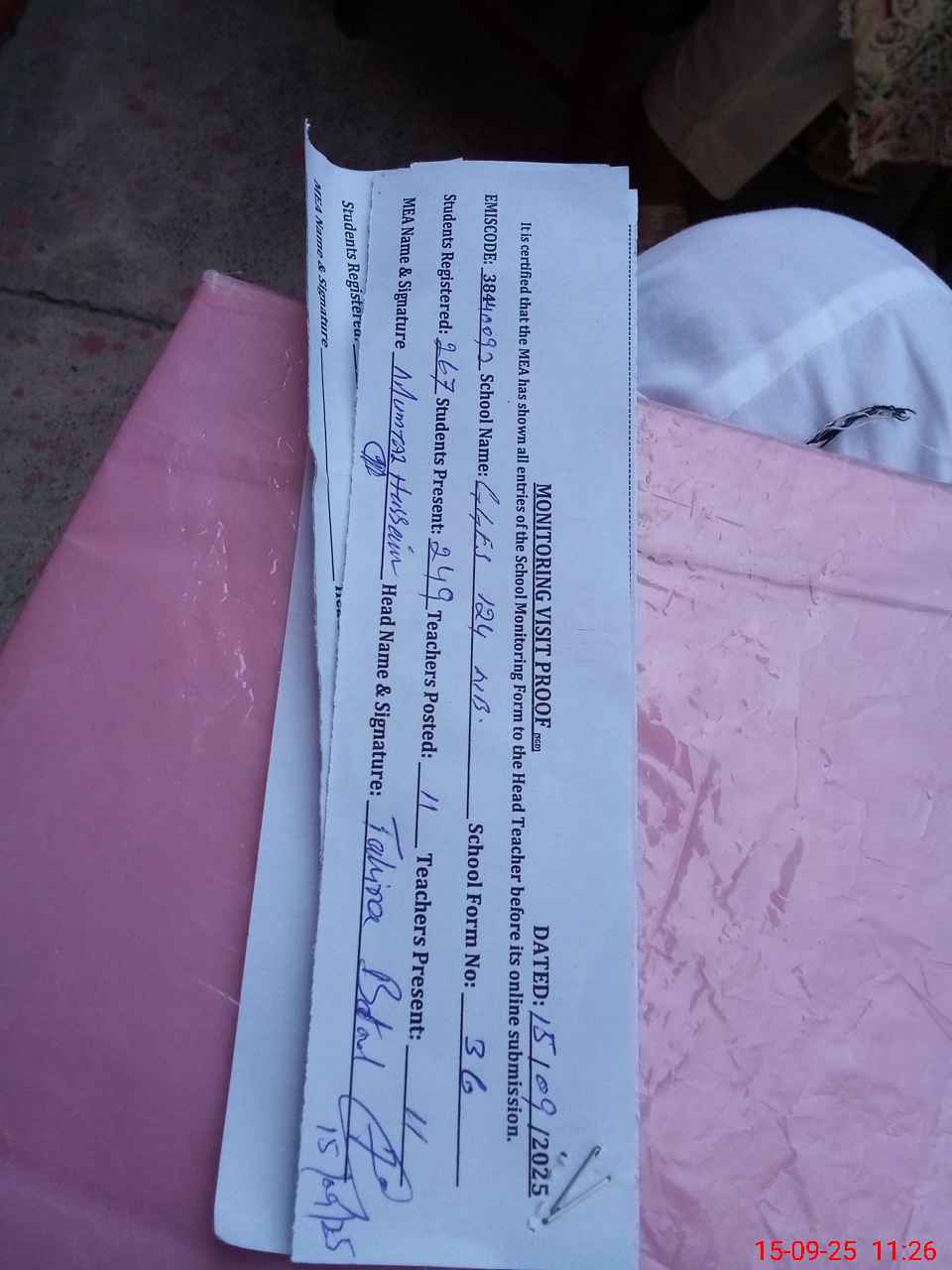| Certified that this School was Inspected by the Undersigned MEA/DMO Today and the Information Stated Above is as Per Record. | |||||