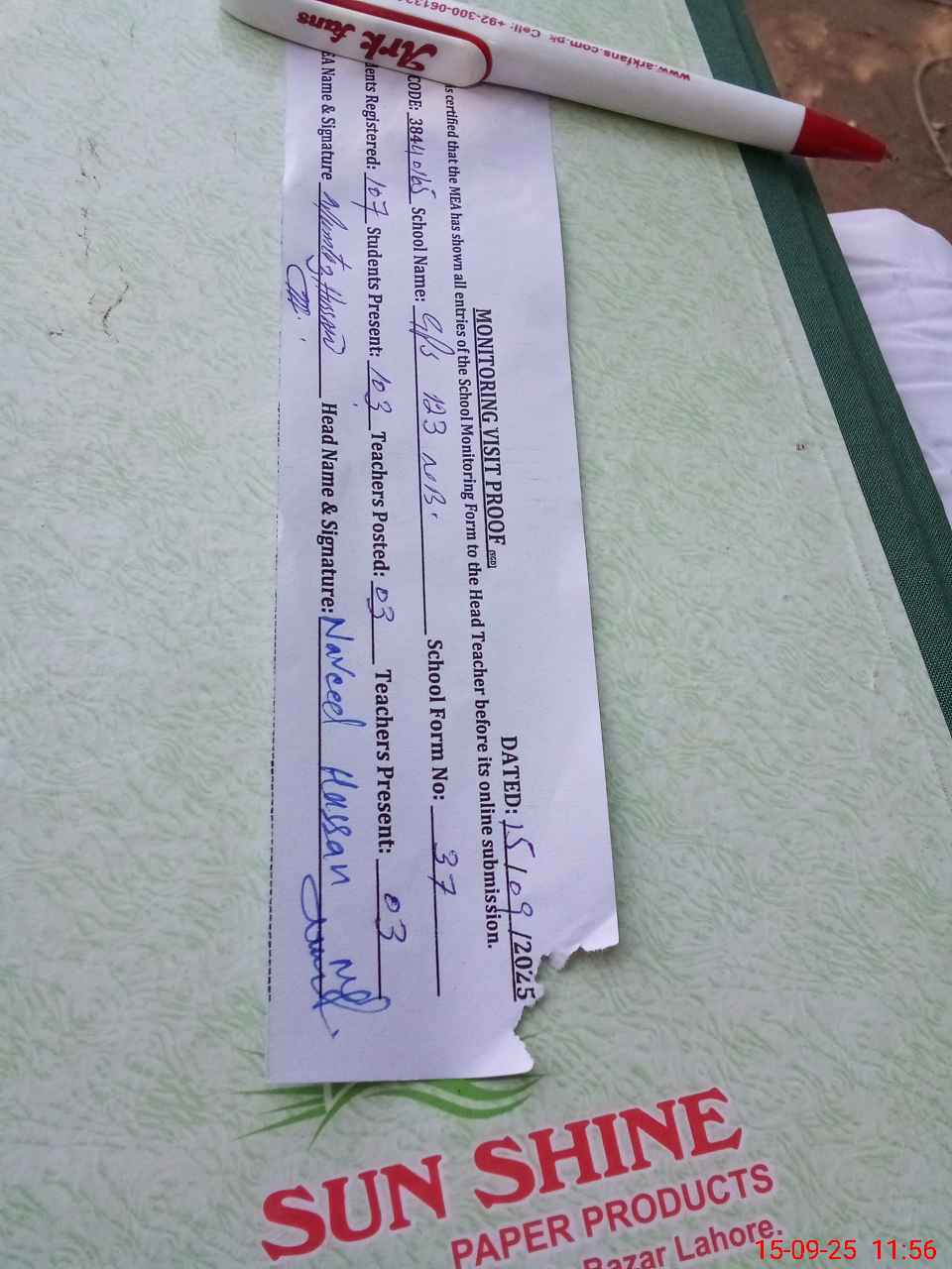 | Attendance Register | Head Teacher | MEA with School | Visit Proof |