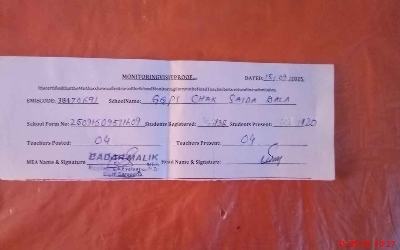 | EMIS Code: 38470691 | Name of School: GGPS CHAK SAIDA BALA | |||