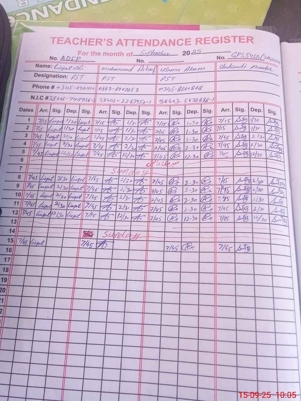 | Name: LI**** AL**** Designation: (School Headmaster's/Headmistress's) PST Phone/Cell Number: 03**** |