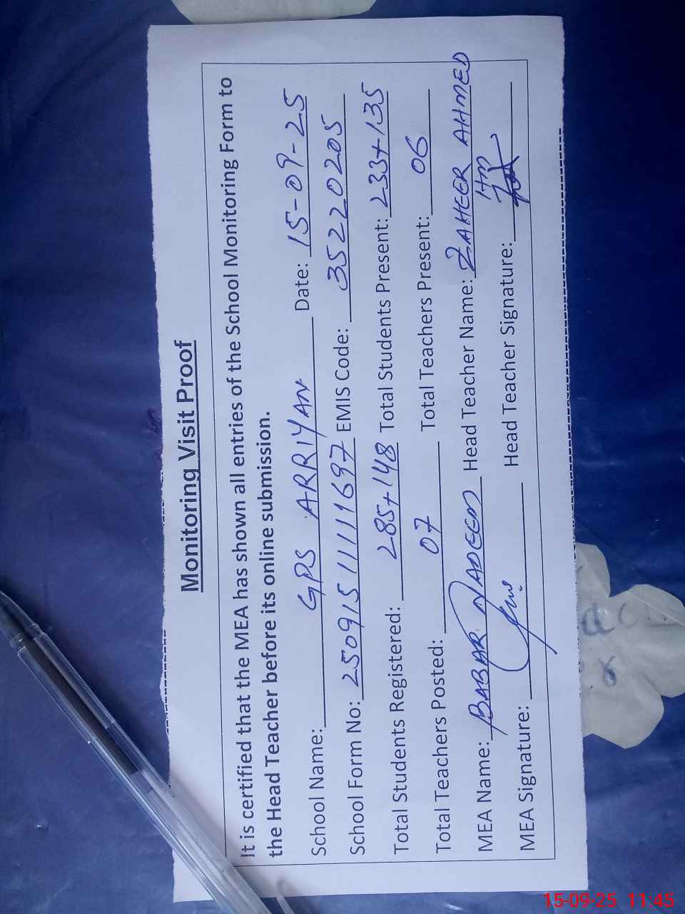 | EMIS Code: 35220205 | Name of School: GPS ARRYIAN | |||