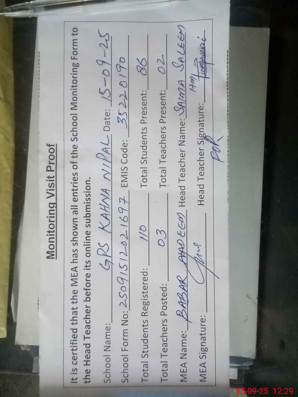 | EMIS Code: 35220190 | Name of School: GPS KAHNA NIPAL | |||