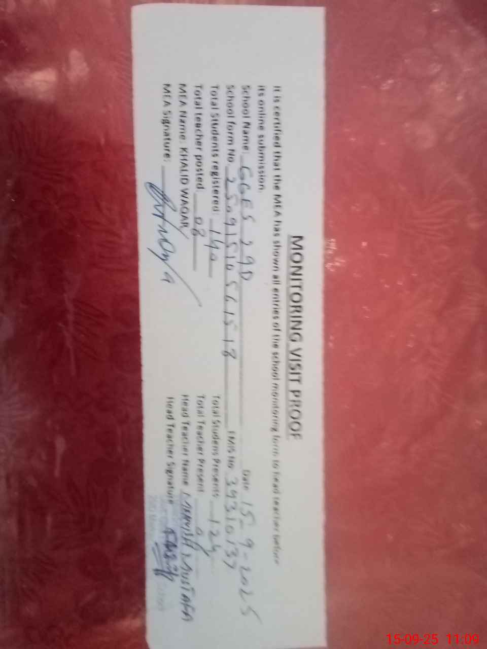 | Certified that this School was Inspected by the Undersigned MEA/DMO Today and the Information Stated Above is as Per Record. | |||||