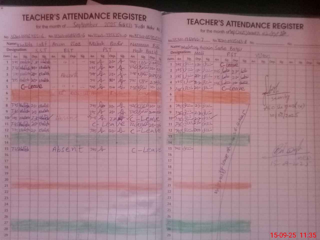| 35**** | Na**** Bi**** | NAIB QASID | Regular | 1 | 0 | 0 | 0 | 0 | 0 | 0 | 0 | 1 | Casual |