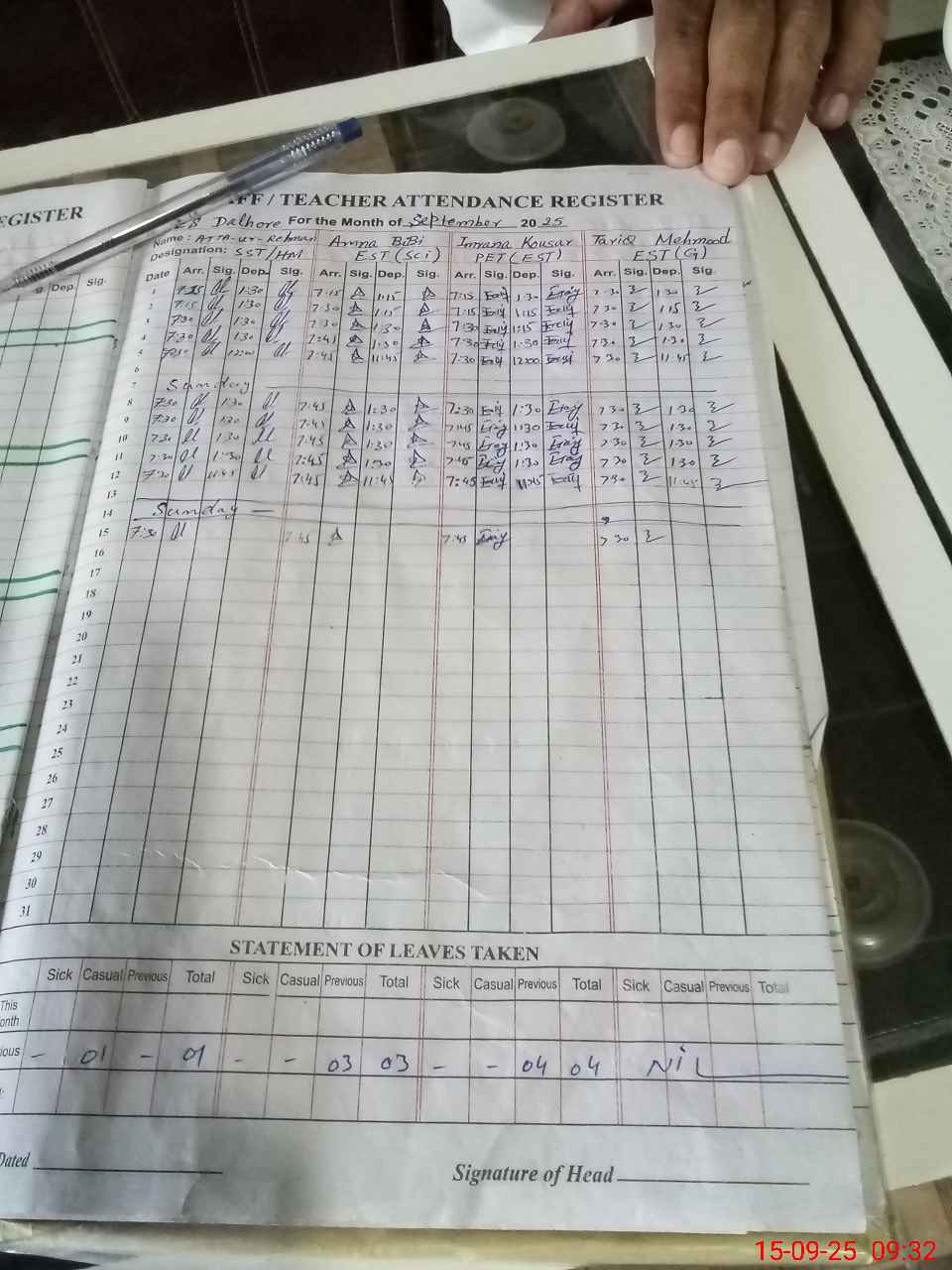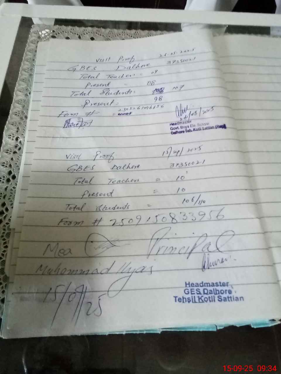| Attendance Register | Head Teacher | MEA with School | Visit Proof |