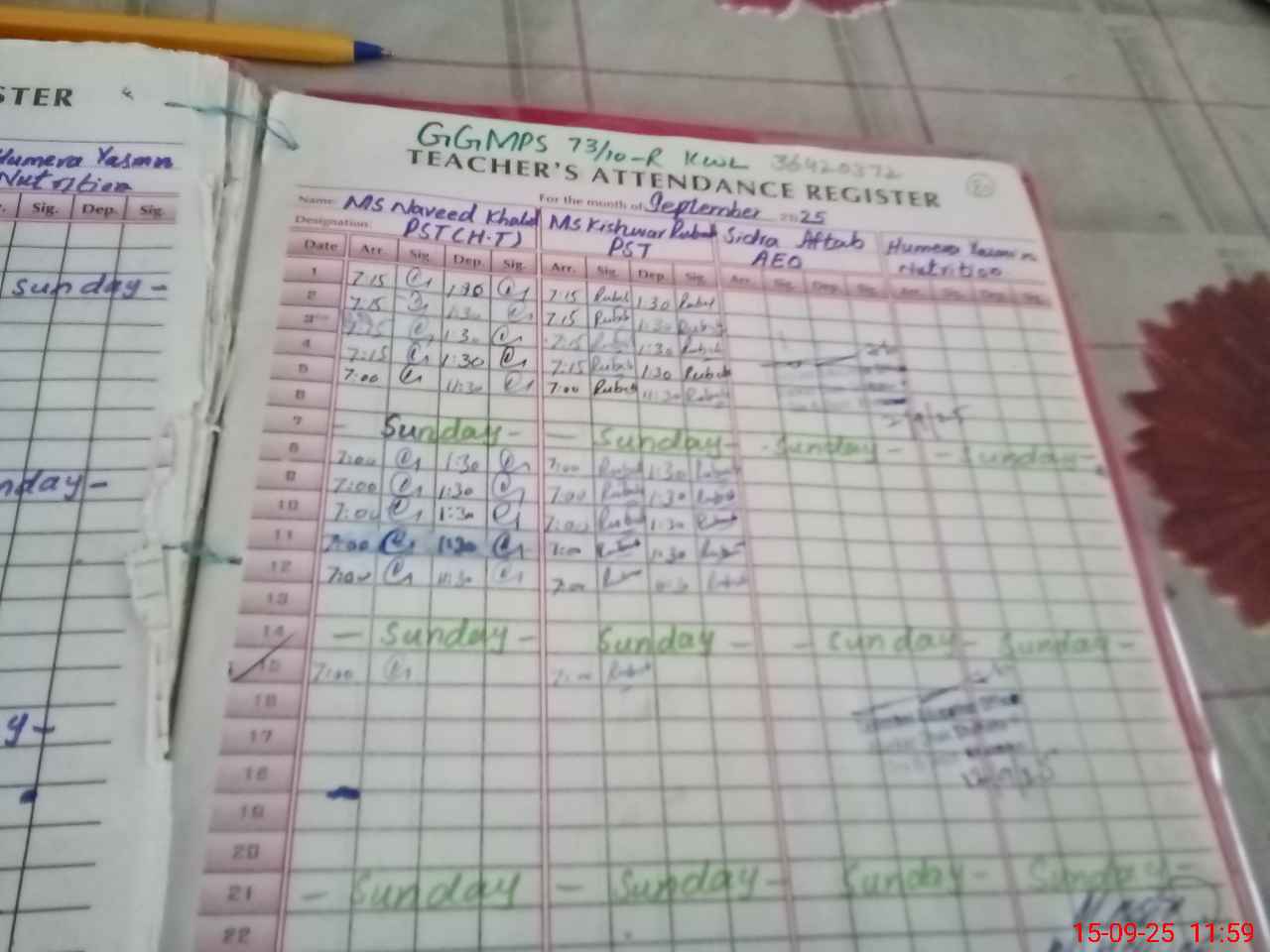 | Name: Na**** Ka**** Designation: (School Headmaster's/Headmistress's) PST Head Phone/Cell Number: 03**** |