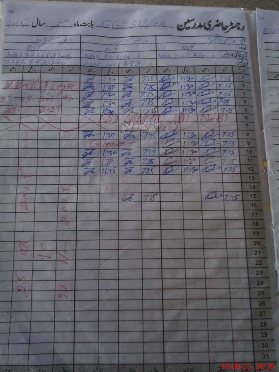 | 31**** | Mu**** Na**** | 2 | 0 | 0 | 0 | 0 | 0 | 0 | 0 | 0 | 0 | Absent (Un-Authorized) | |