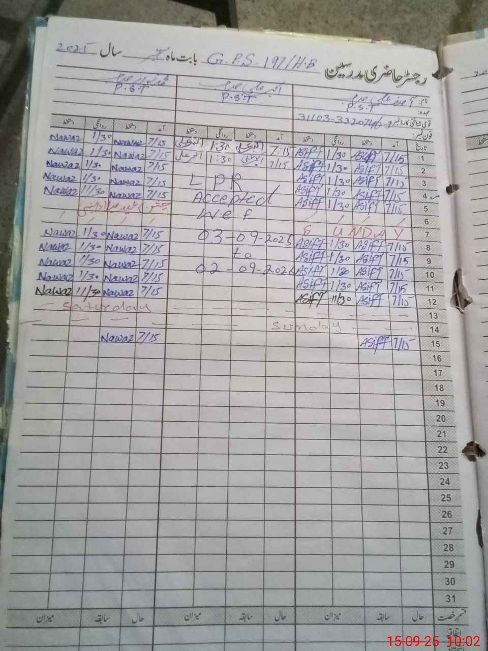 | CNIC | Full Name | Designation | R/C | Absence During Last Calender Month |